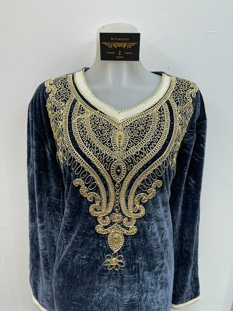 Velours kaftan in 5 verschillende kleuren en in diverse maten van M tot XXXL