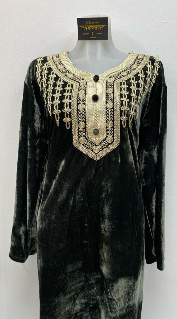 Velours kaftan verkrijgbaar in 4 verschillende kleuren en maten vanaf een maat M tot een XXXL