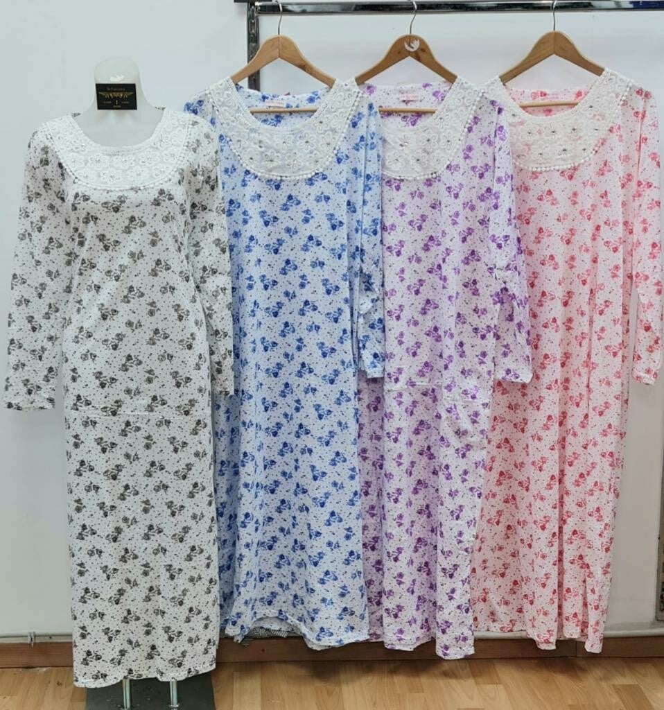Katoenen huisjurk met lange mouwen verkrijgbaar in 4 verschillende kleuren en maten vanaf een L tot een XXXL