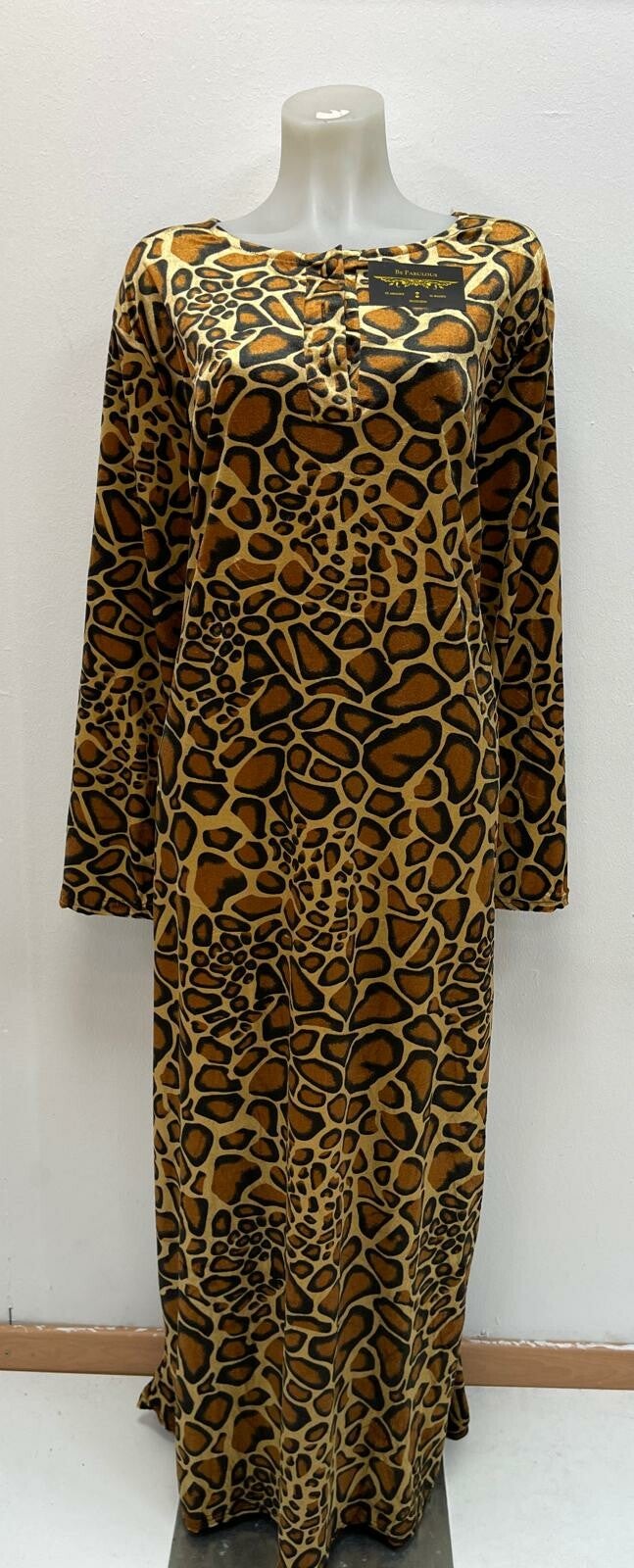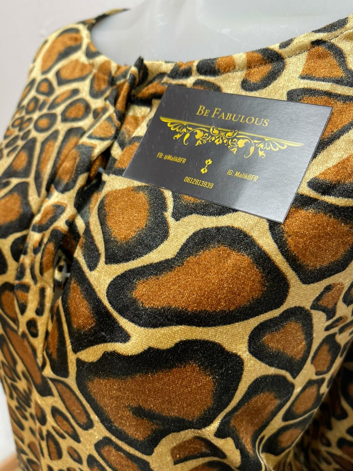 Velours kaftan met luipaardprint. Verkrijgbaar in 4 verschillende kleuren en maten vanaf een M tot een XXXL.