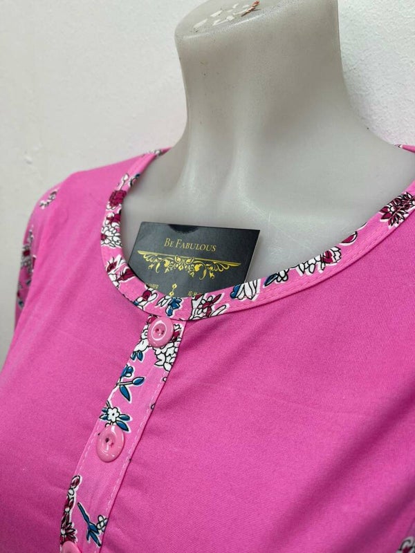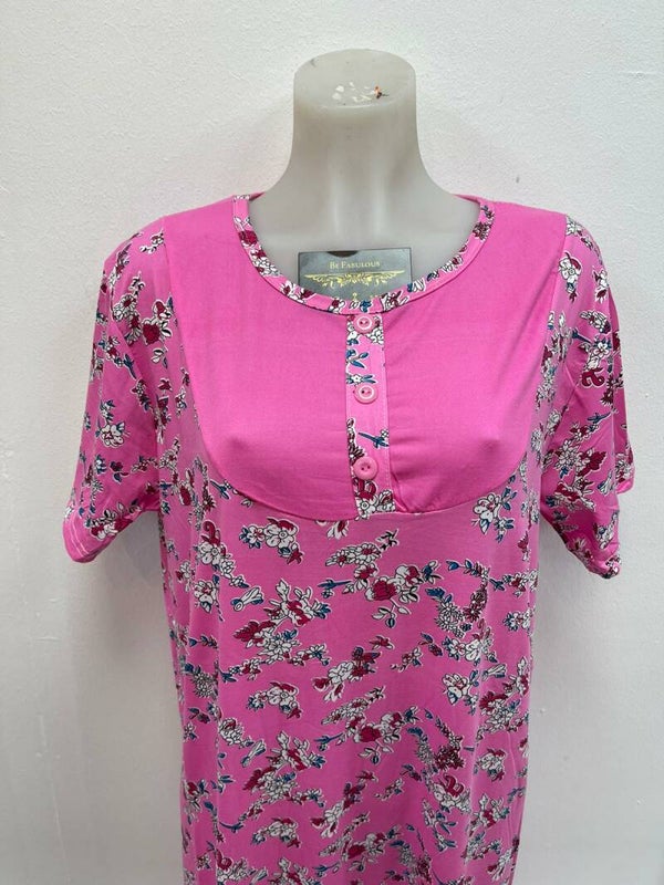 Katoenen huisjurk met korte mouwen verkrijgbaar in 4 verschillende kleuren en maten vanaf een L tot een XXXL