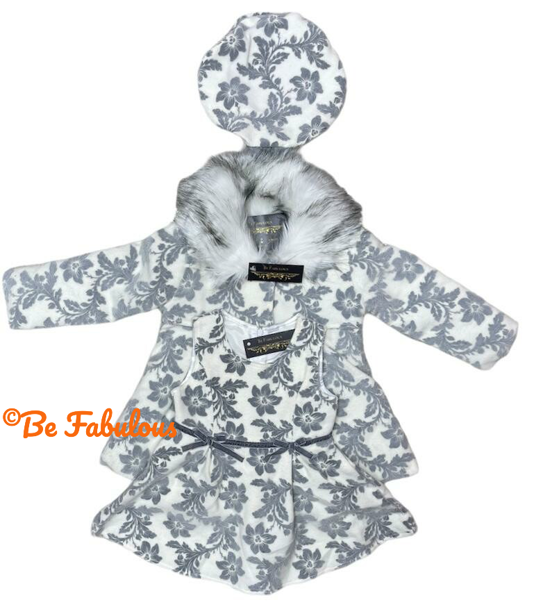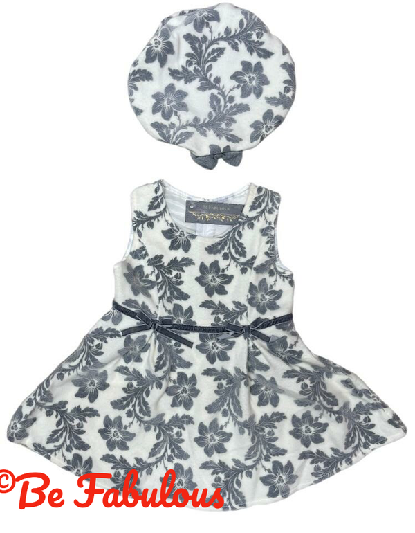 Jurk met jasje en mutsje, verkrijgbaar in het roze en wit.