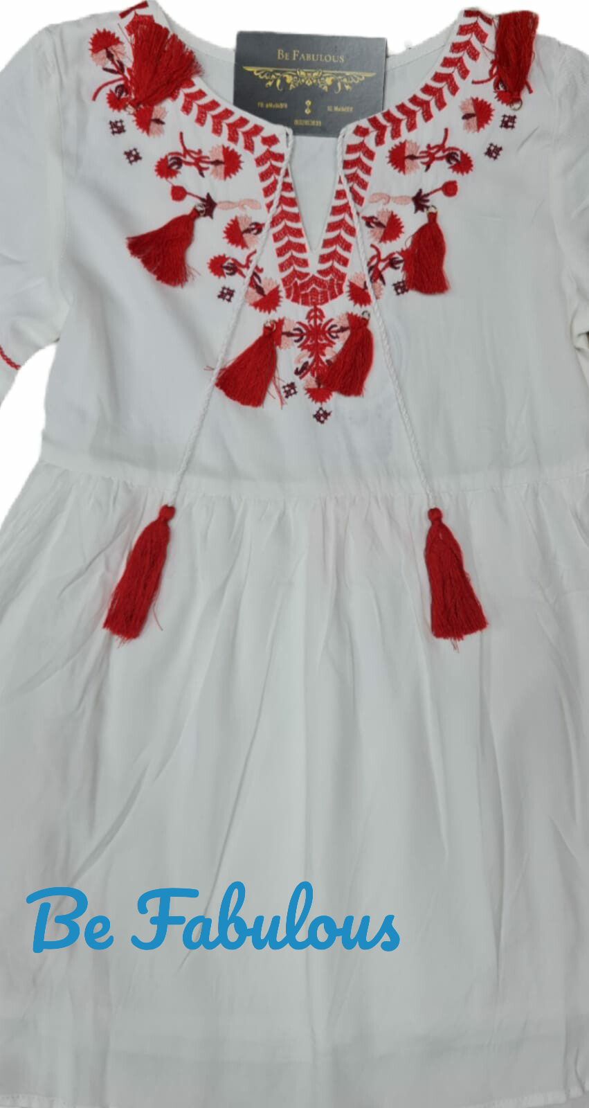 Mooie jurken met rode borduursel verkrijgbaar in 2 kleuren en maten 86 tot 152.