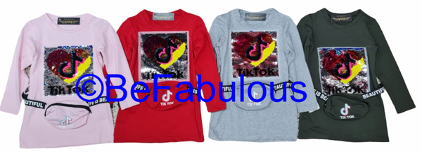 Tiktok jurk met heuptas verkrijgbaar in 4 verschillende kleuren en maten vanaf een maat 98 tot 164