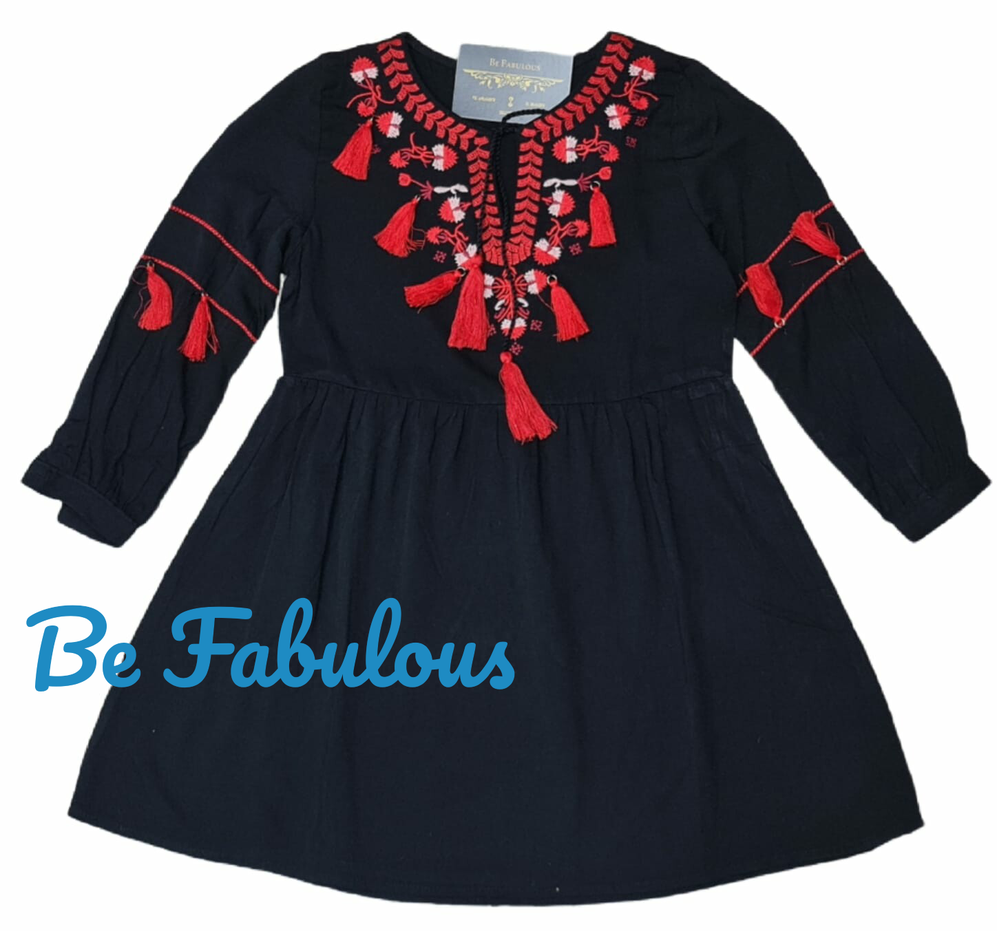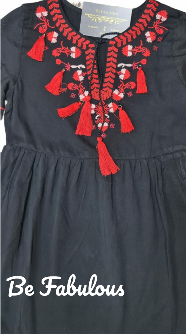 Mooie jurken met rode borduursel verkrijgbaar in 2 kleuren en maten 86 tot 152.