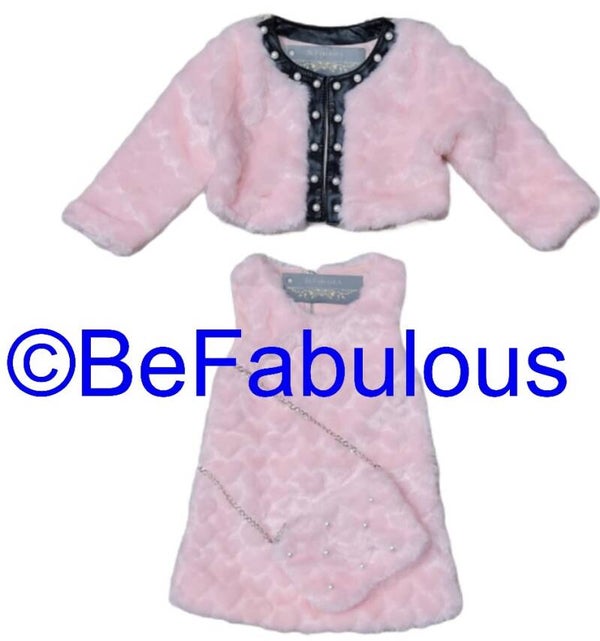 Kinderset voor kinderen van 6 maanden tot 3 jaar. Deze set bestaat uit een mouwloos jurkje, bolero en tasje.