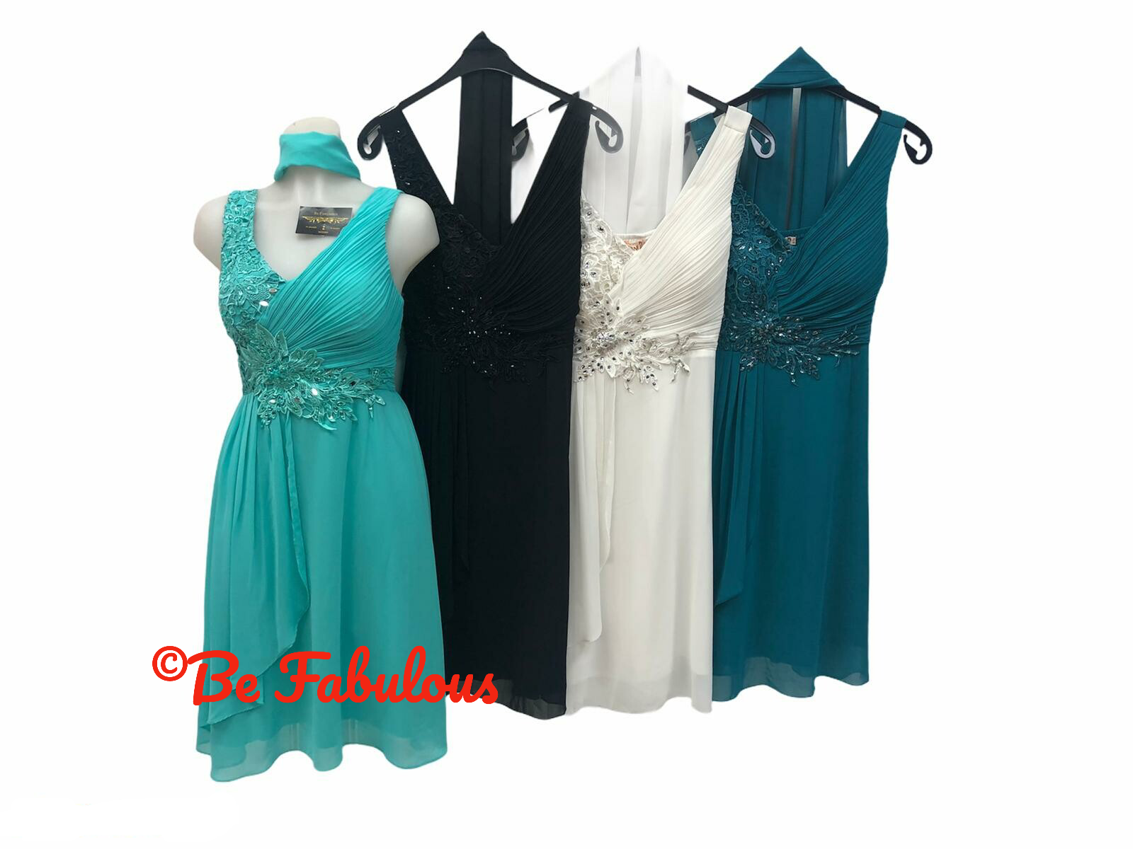 Cocktail jurken verkrijgbaar in maten S-M en L-XL.