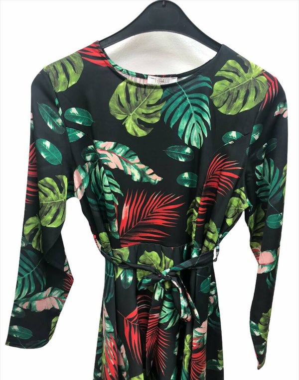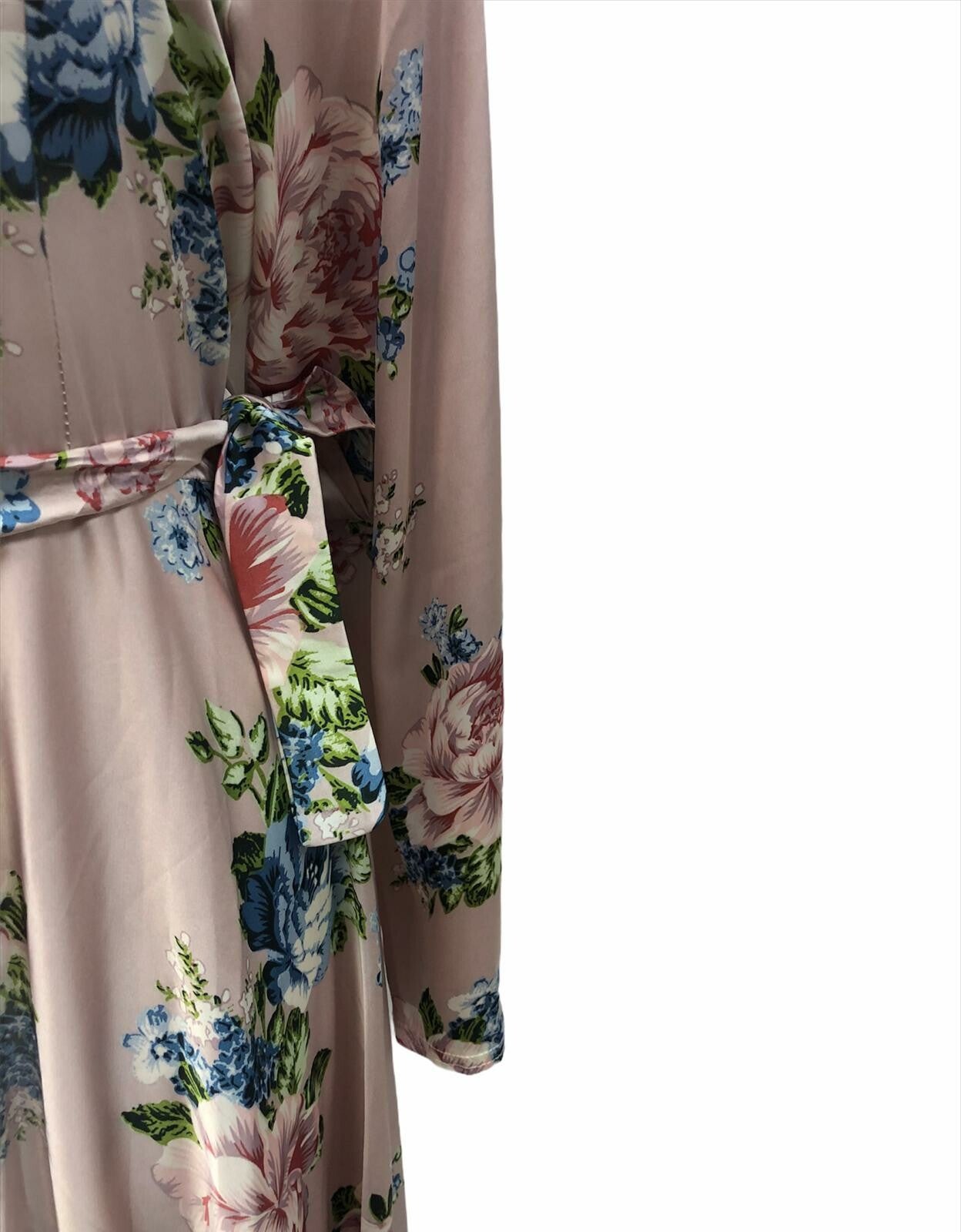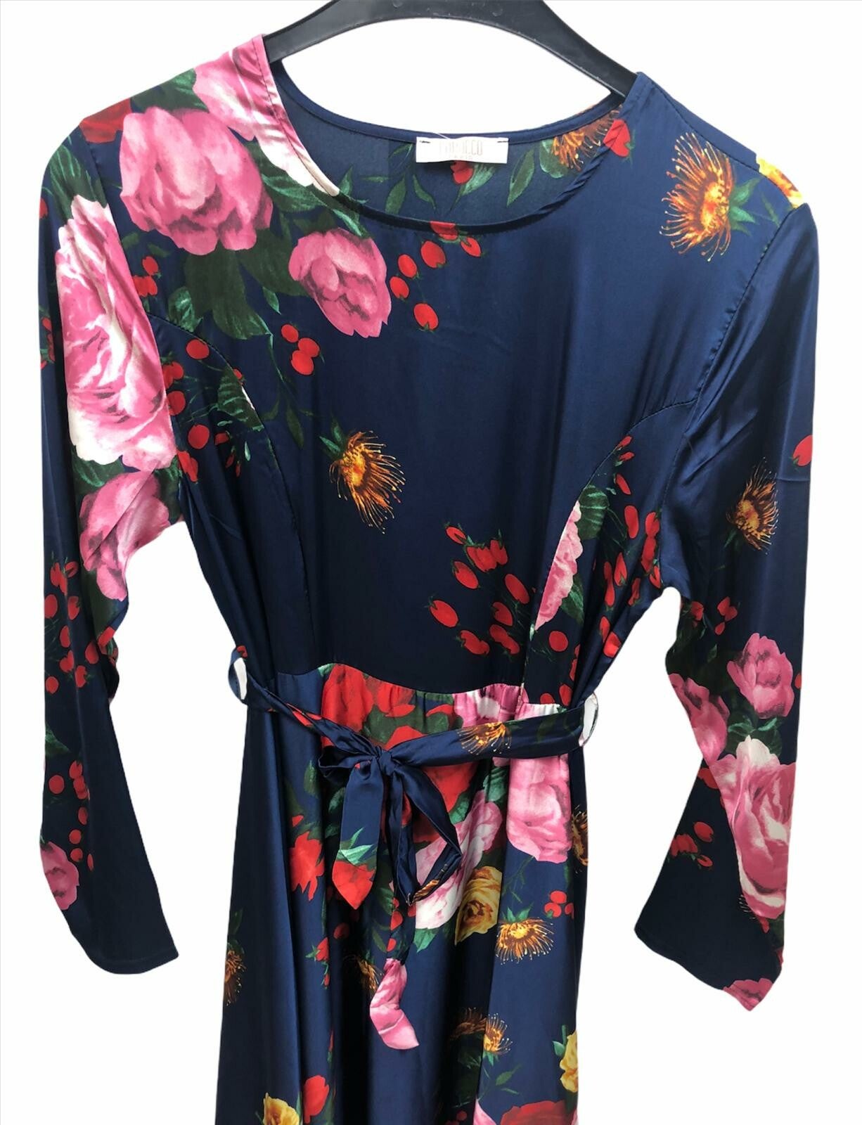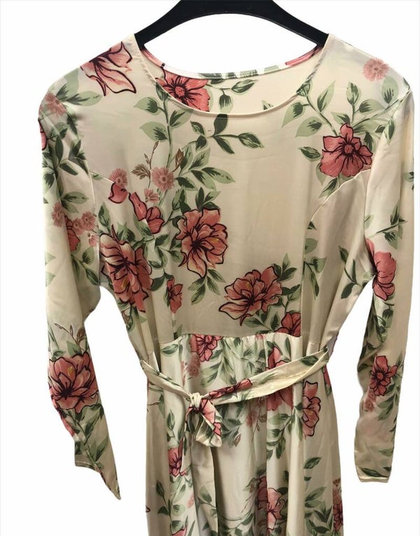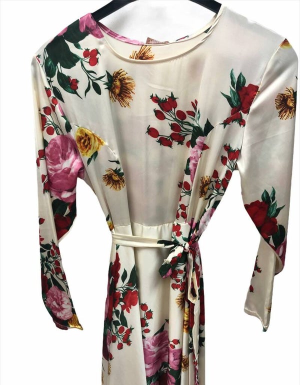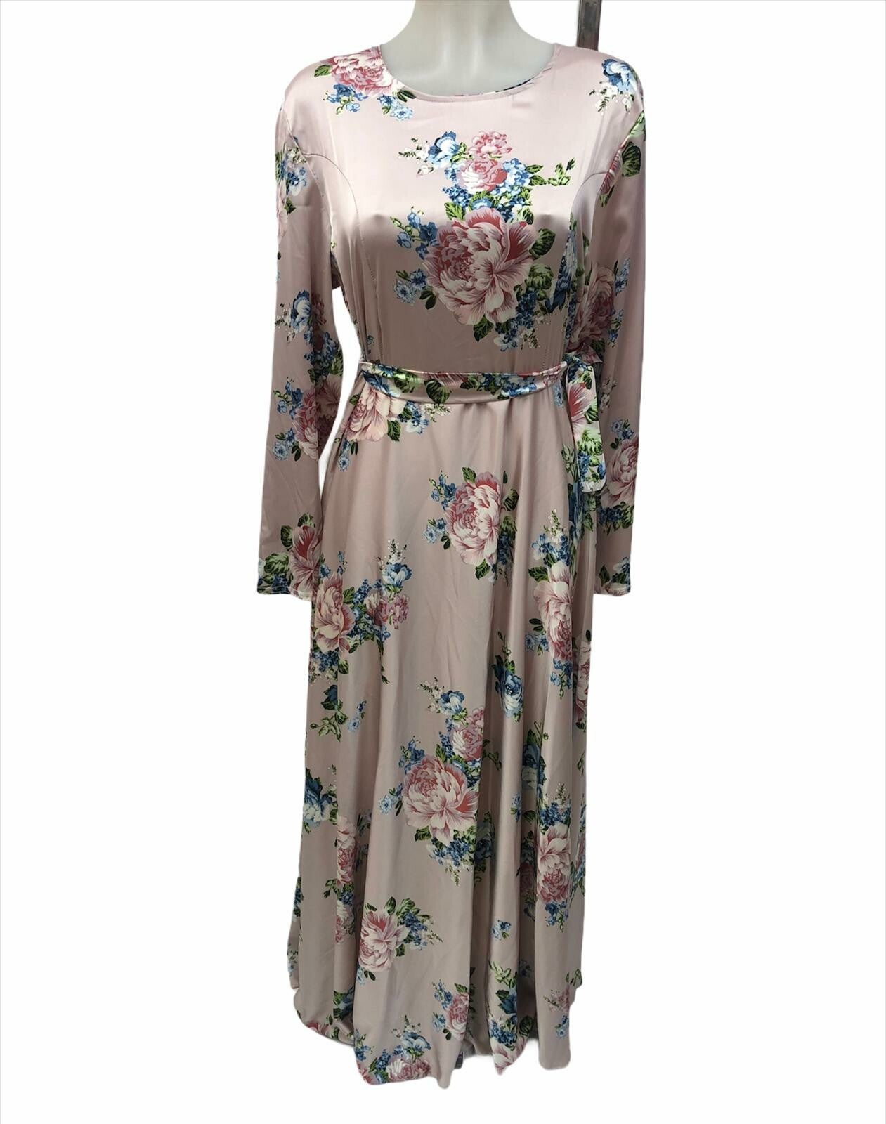 Silk maxi jurk in standaad maat verstelbaar met de bijgeleverde riem. De jurk past iedereen tussen de maat M tot XL.