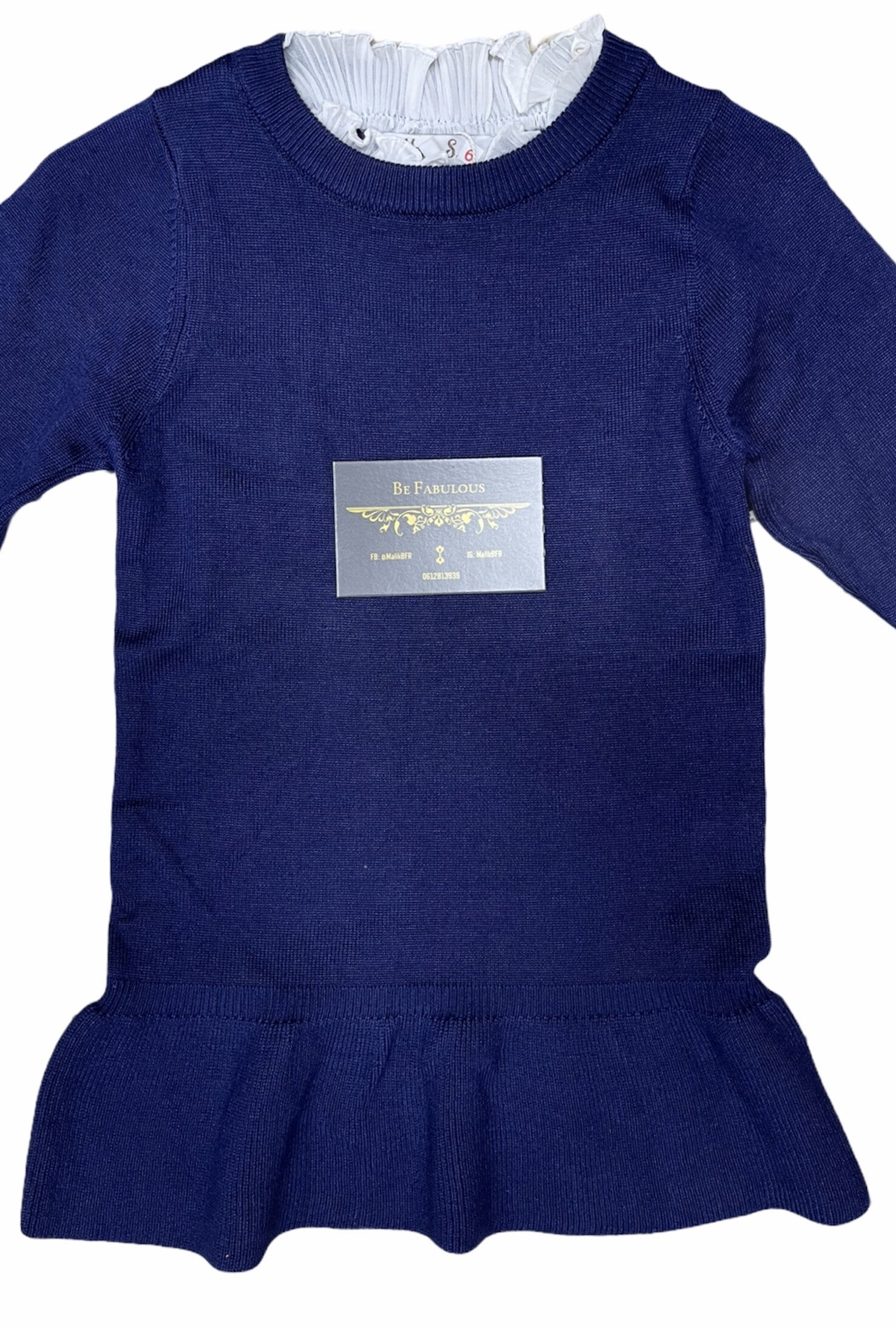 De kraagje en de mouwtjes zitten vast aan de trui zelf.