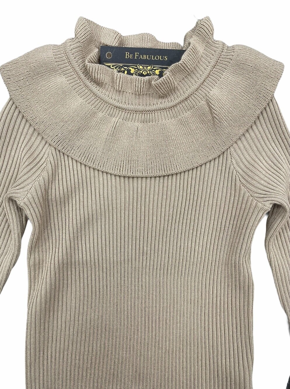 De kraagje en de mouwtjes zitten vast aan de trui zelf.