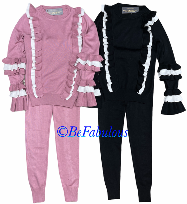 Twin set met verticale franje Roze