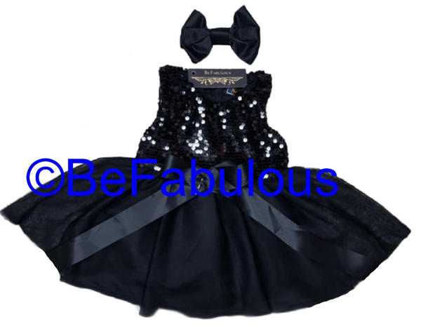 Lieve Zwarte jurk met pailletten verkrijgbaar in maten 86-140. Tevens ook te bestellen in babymaten.