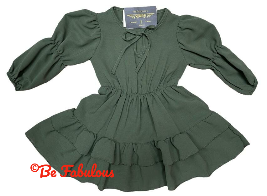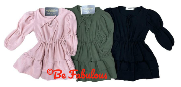 Gelaagd jurkje met strik kraag. Verkrijgbaar in 3 verschillende kleuren en maten 98-164.