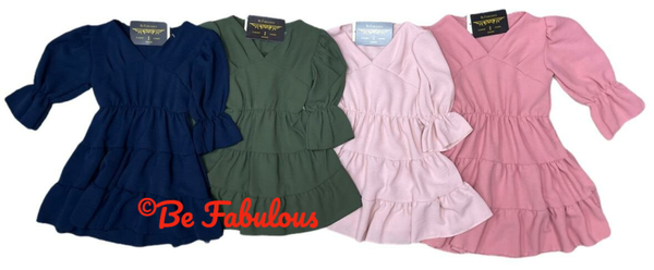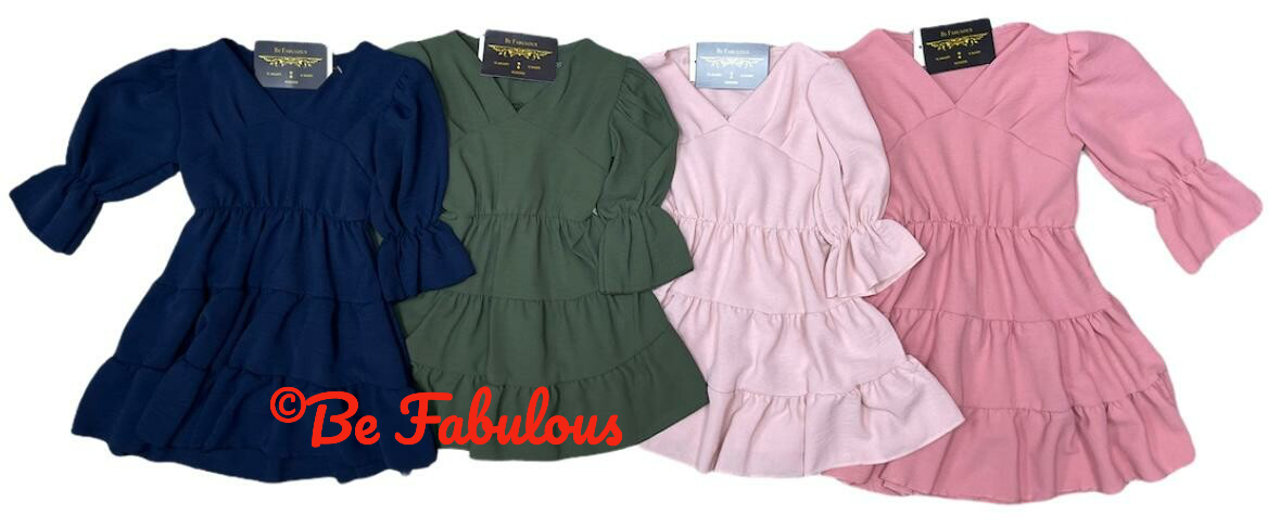 Gelaagd jurkje met V kraag. Verkrijgbaar in 4 verschillende kleuren en maten 98-164.