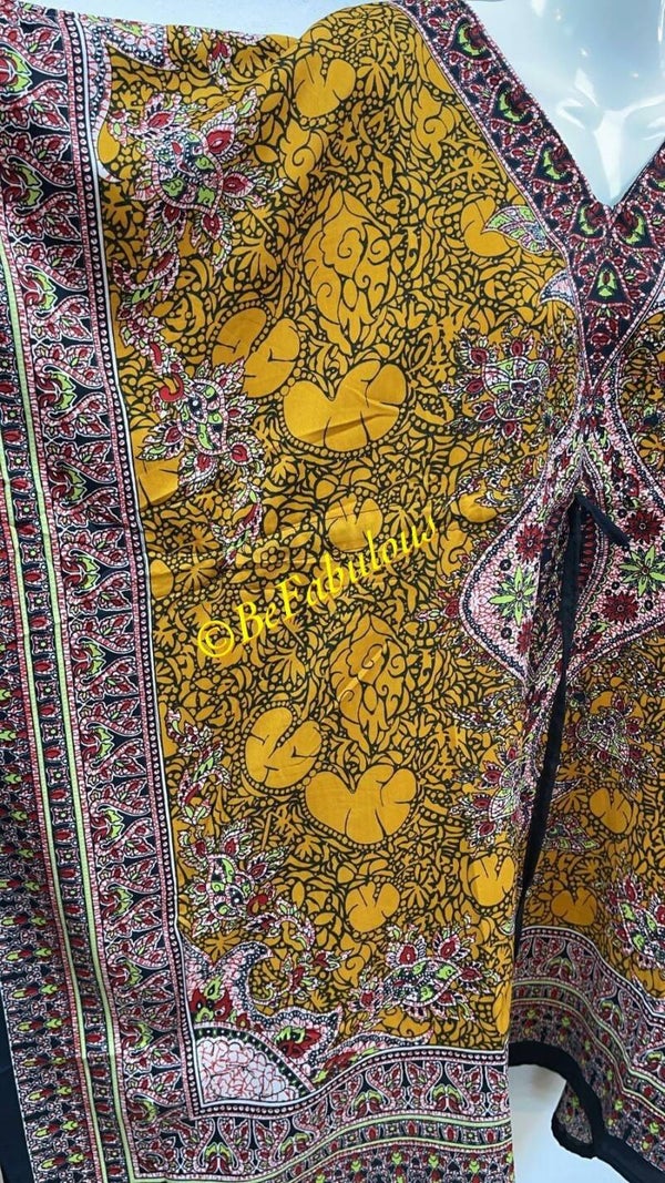 Luchtige korte kaftan, standaard maat verstelbaar middels een touwtje middenin de kaftan.
