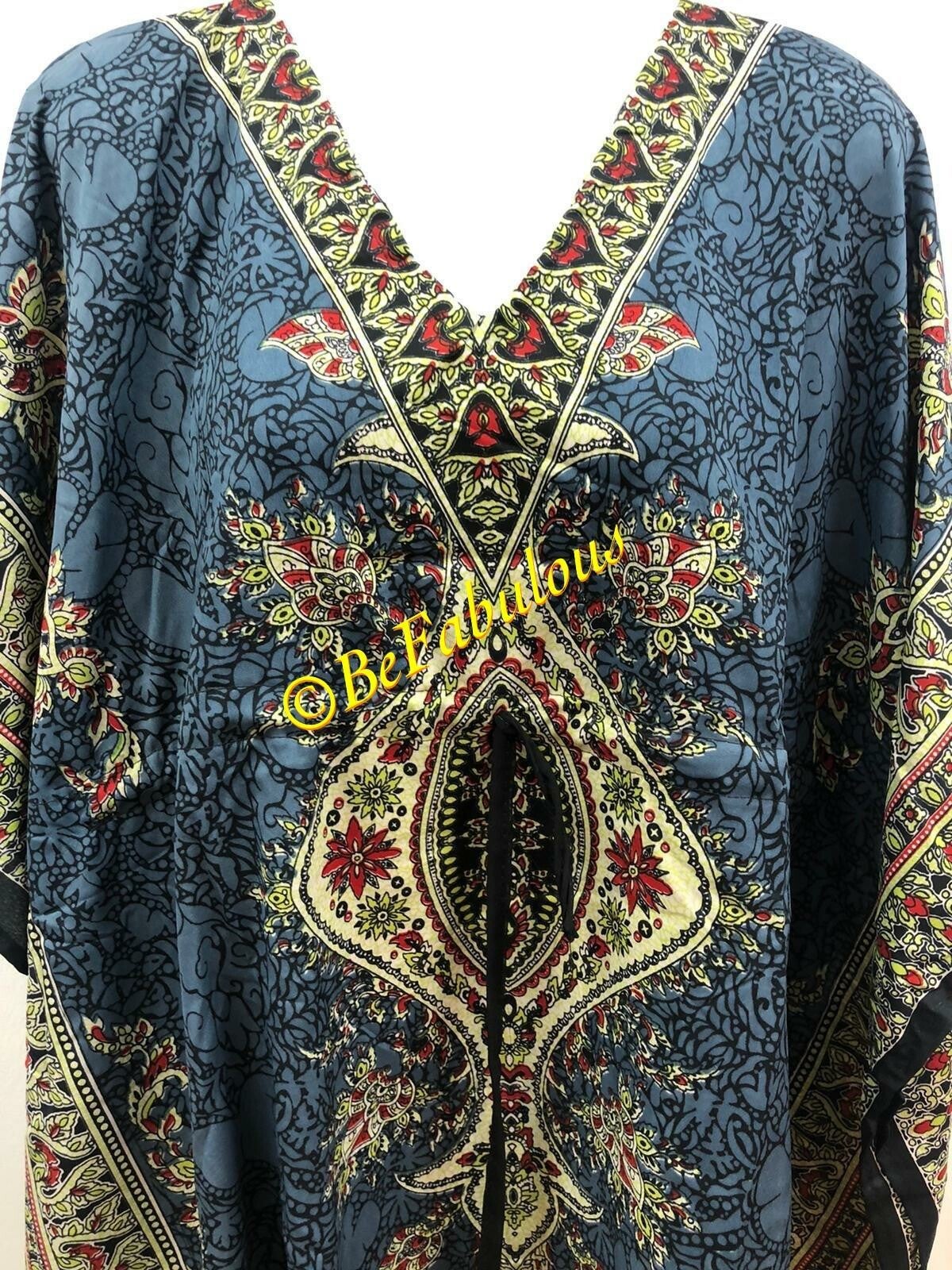 Luchtige korte kaftan, standaard maat verstelbaar middels een touwtje middenin de kaftan.