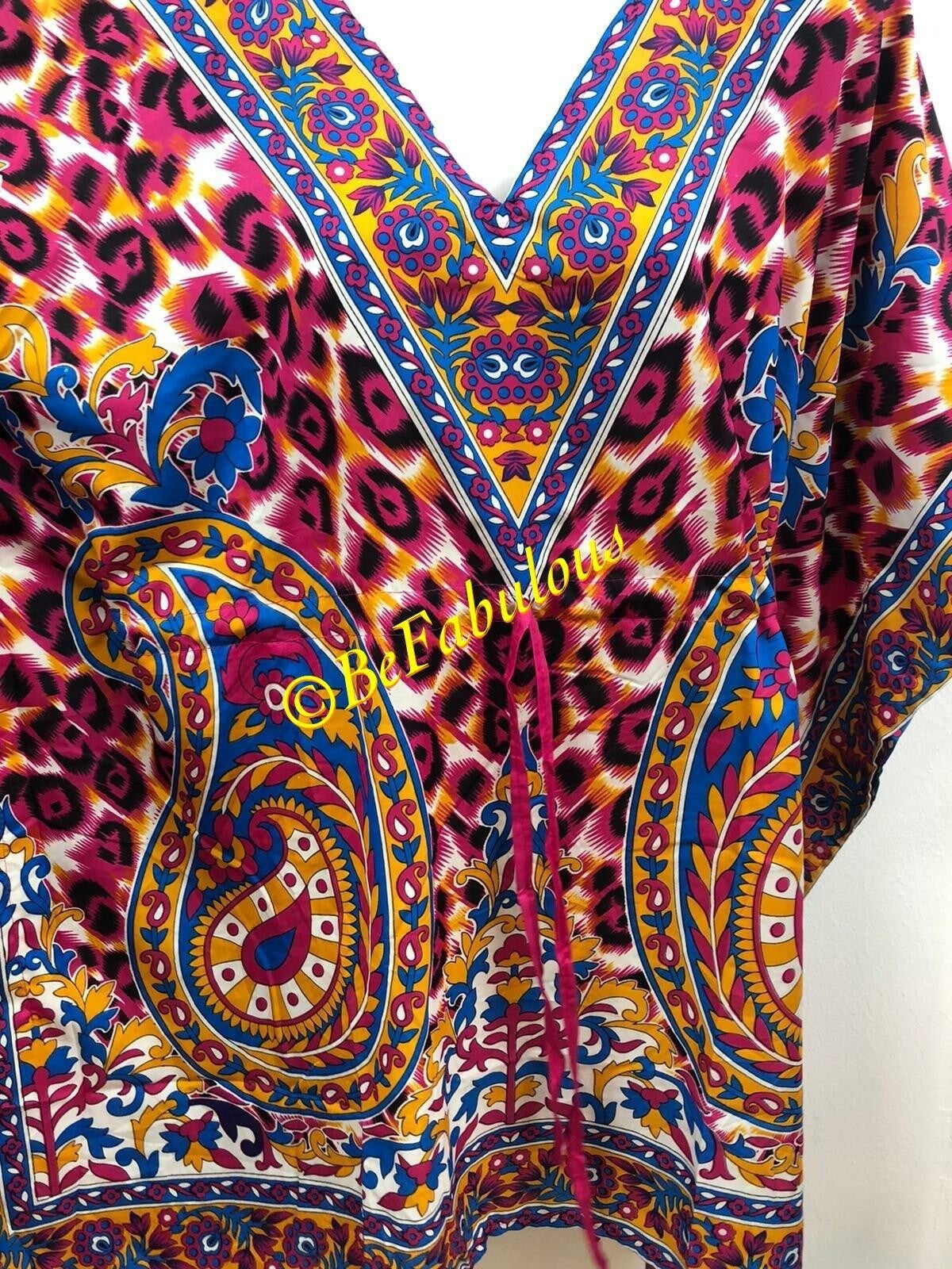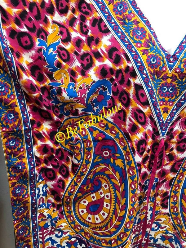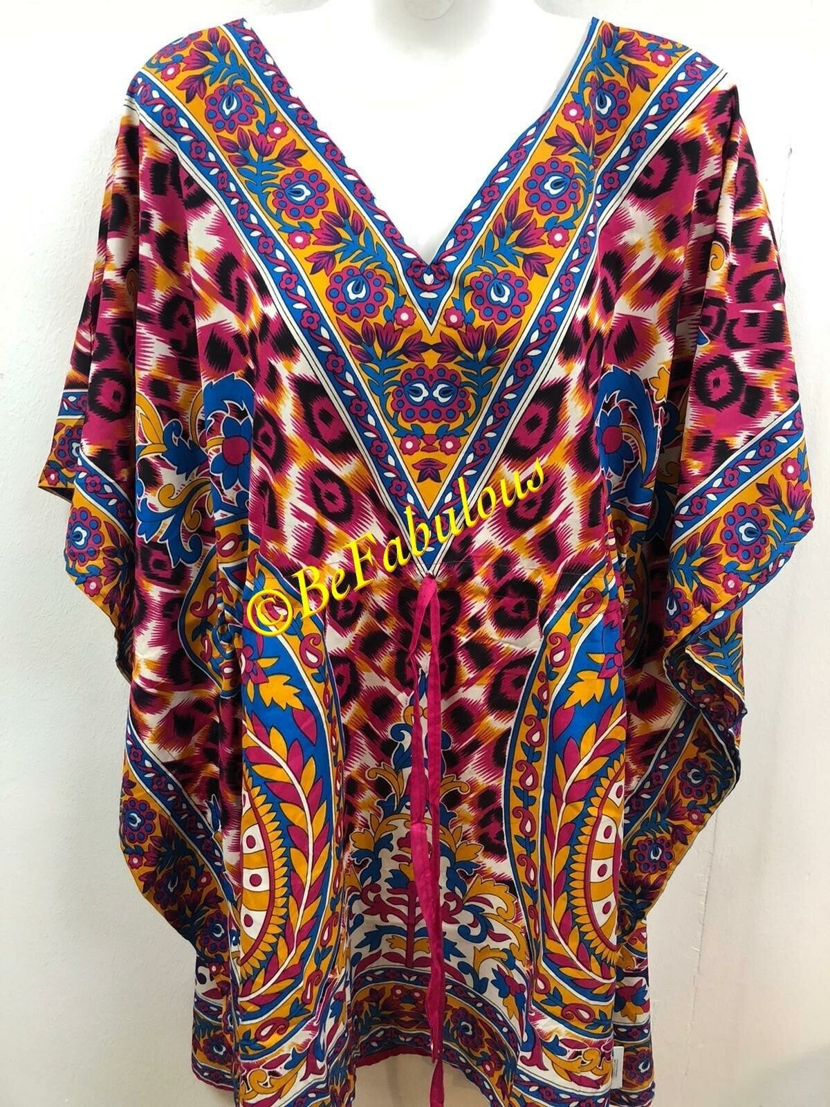 Luchtige korte kaftan, standaard maat verstelbaar middels een touwtje middenin de kaftan.