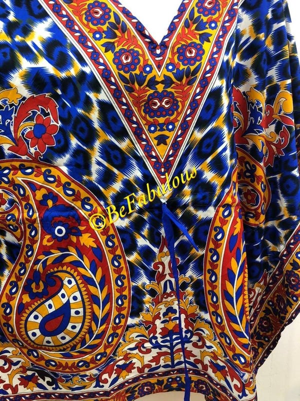 Luchtige korte kaftan, standaard maat verstelbaar middels een touwtje middenin de kaftan.