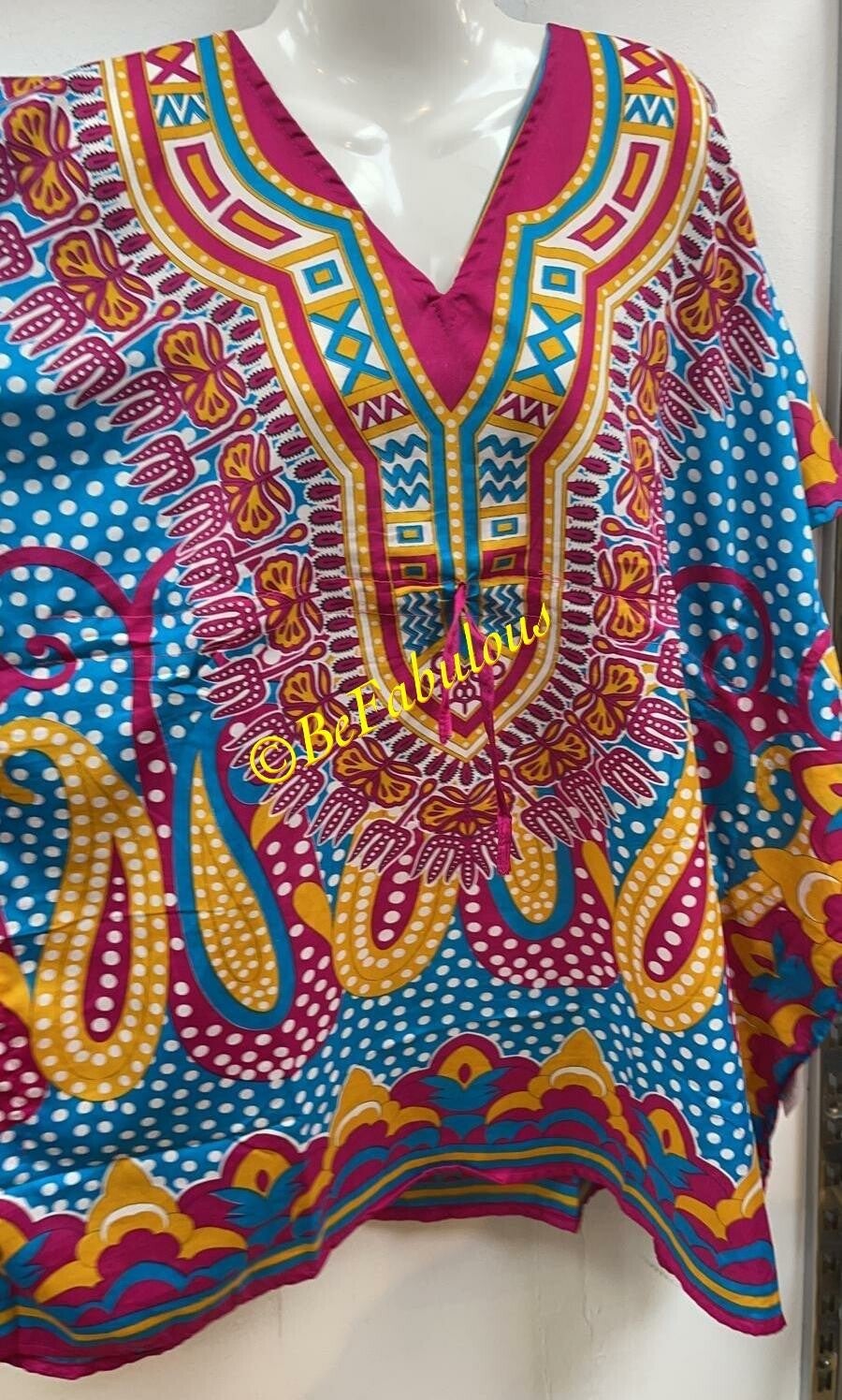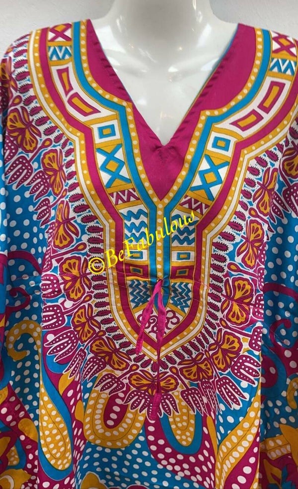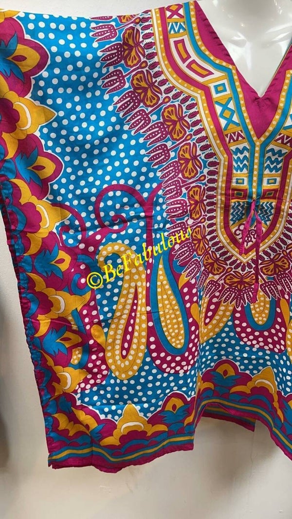 Luchtige korte kaftan, standaard maat verstelbaar middels een touwtje middenin de kaftan.