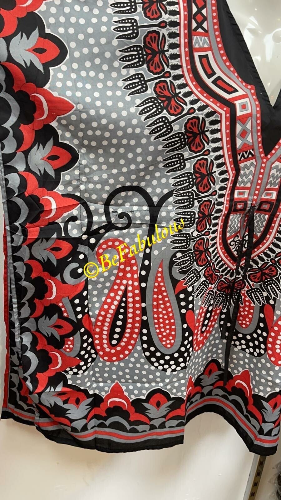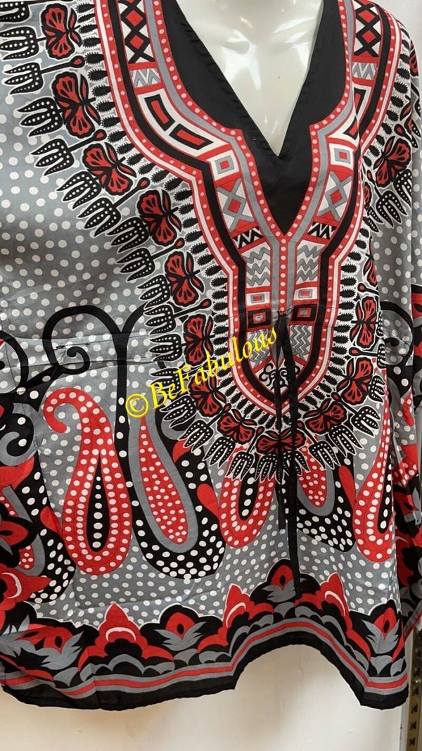 Luchtige korte kaftan, standaard maat verstelbaar middels een touwtje middenin de kaftan.