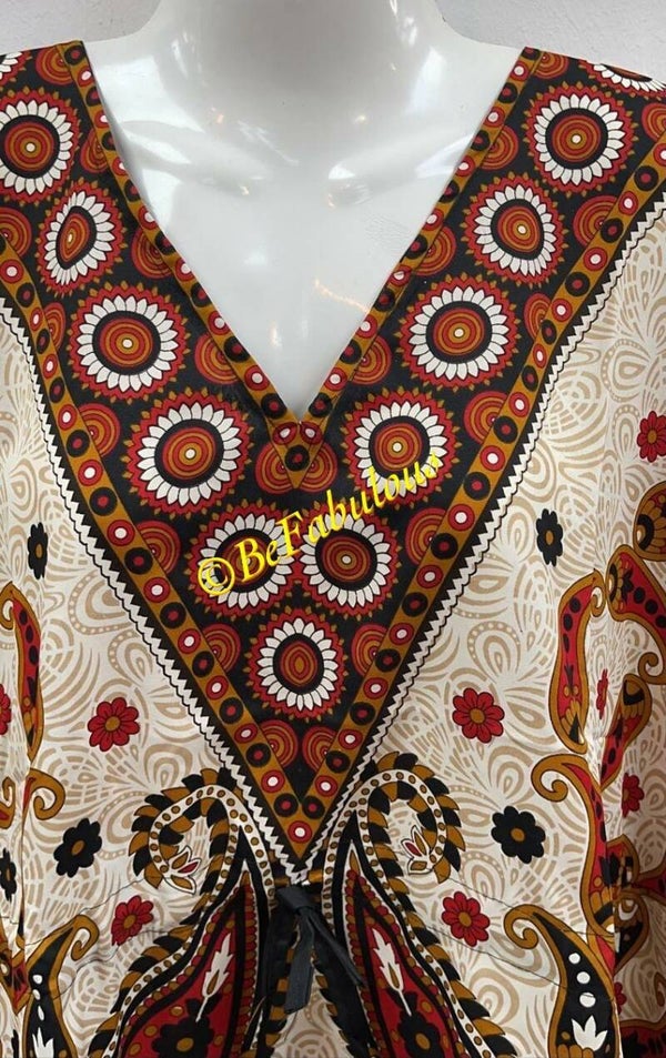 Luchtige korte kaftan, standaard maat verstelbaar middels een touwtje middenin de kaftan.