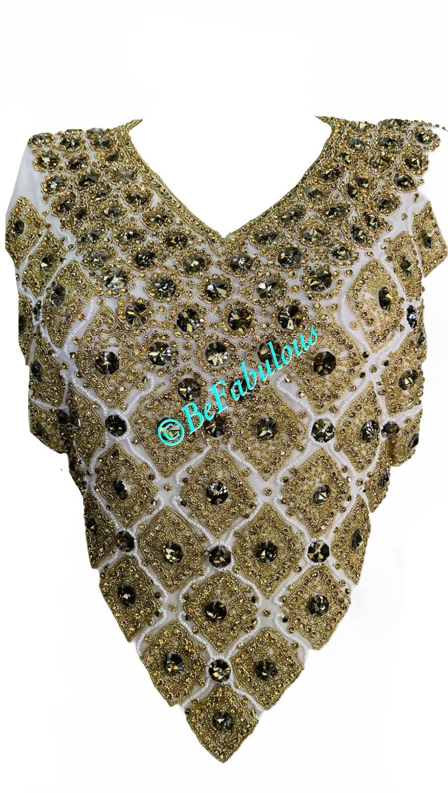 Shiffon farasha met gouden steentjes. De jurken komen in standaard maat binnen en zijn te vestellen middels een band aan de binnenzijde. Op deze manier passen de jurken iedereen tussen een maat S tot XXL.