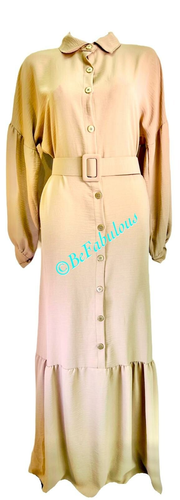 Katoenen gelaagde jurk met een kraag. Verkrijgbaar in 3 kleuren en maten en standaard maat